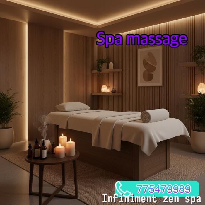 Massage 774318968 777555987Votre Escapade SpaNe laissez pas passer l'occasion de vous offrir une expérience inoubliable au infini zen spa Réservez dès maintenant et plongez dans un monde de détente et de régénération. Nos experts vous attendent pour vous offrir des soins personnalisés qui vous laisseront revigoré(e) et revitalisé(e). Que vous souhaitiez un massage relaxant, avec jacuzzi de qualité supérieure ou une escapade complète de soins du corps, notre équipe attentionnée est là pour répondre à vos besoins. Planifier votre moment de bien-être dès aujourd'hui et offrez-vous une évasion sensorielle au infini zen spaPrendre rendez-vous338256330